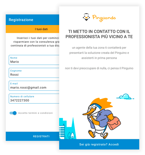 Pinguando ti mette in contatto con l’intermediario che ti aiuterà nella identificazione delle tue necessità e ti guiderà nella personalizzazione della proposta.